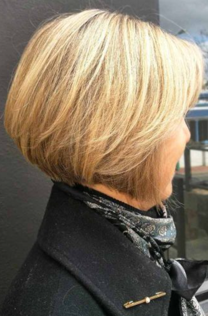 Еще одна из универсальных стрижек для женщин после 50. Она идет почти всем, и стилисты часто советуют ее, чтобы визуально скорректировать внешность. За счет объемного и визуально приподнятого затылка осанка кажется более ровной, черты лица – вытягиваются. «Боб» удобен в носке, укладке. Обладательницы тонких прядок могут рассмотреть этот вариант. Высветленные части и многослойно выстриженная шевелюра кажется пышной и густой.