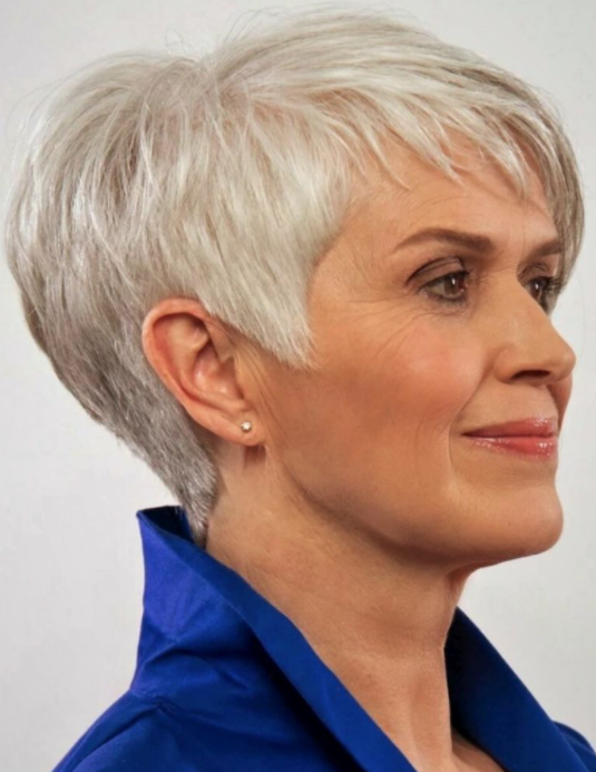 В своей работе современные мастера учитывают состояние шевелюры, ее плотность и структуру. Седые пряди становятся более жесткими. Поэтому нужно заранее подумать над тем, стоит ли их отращивать или выбрать прически на короткие волосы для женщин.