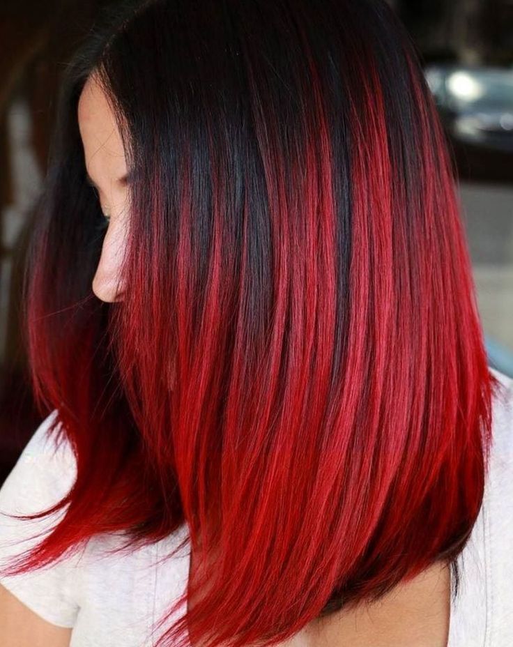 Яркое внимание акцентируется на кончики, а длина остается светлой или натуральной. Итак, Dip-dye отличается четкой границей между двумя тонами.