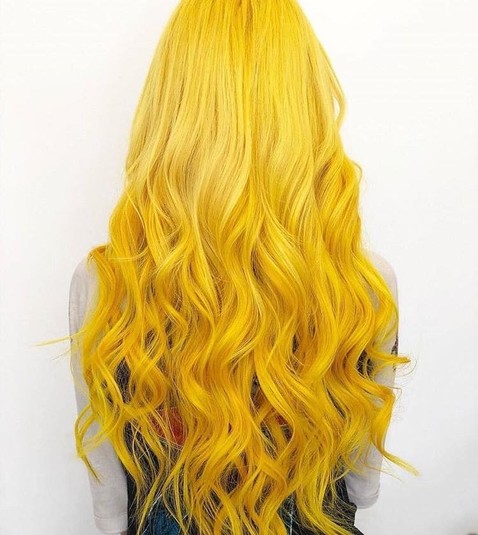 Если до этого у вас был пшеничный блонд, но решили попробовать самый необычный цвет волос, то для эксперимента выберете желтый. Особенно стильно цвет выглядит на девушках с фарфоровой кожей с зелено-голубым оттенком глаз.