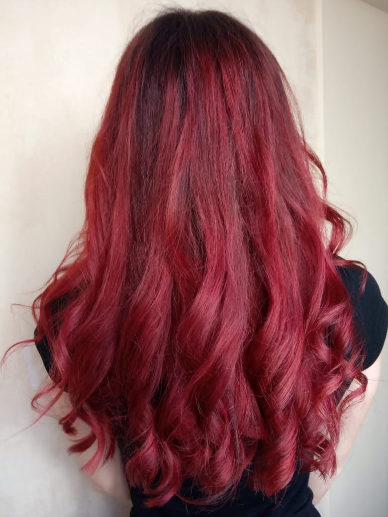 Итак, еще одна неординарная окраска с ярким акцентом на корни. То есть, основная часть длины может быть светлее или натуральной. Безусловно, неплохо выглядит красивая, постепенная растяжка.